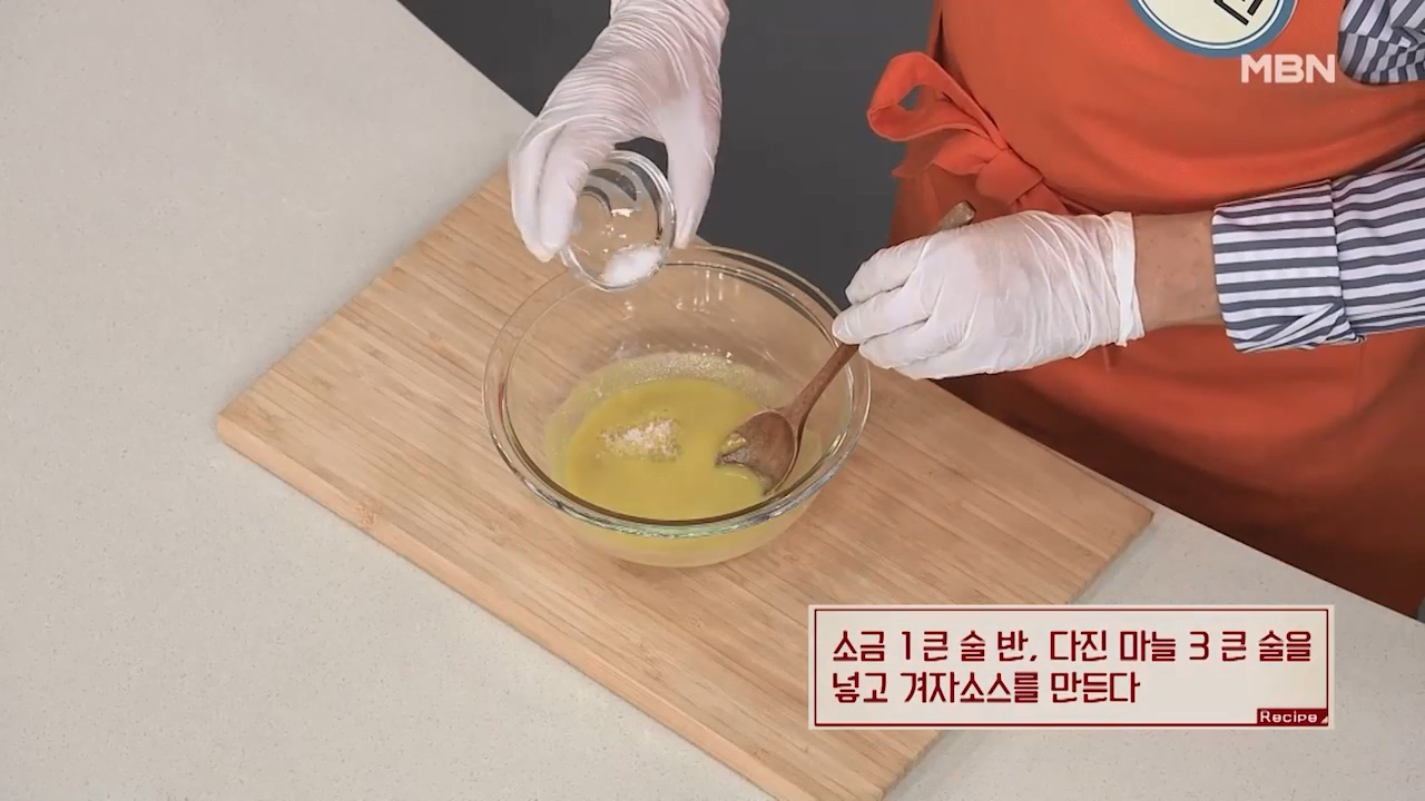 6. 소금 1큰술반, 다진마늘 3큰술을 넣고 겨자소스를 만듭니다.