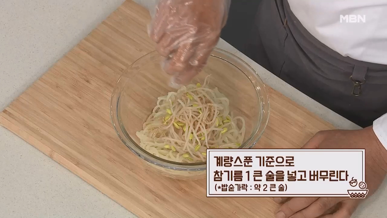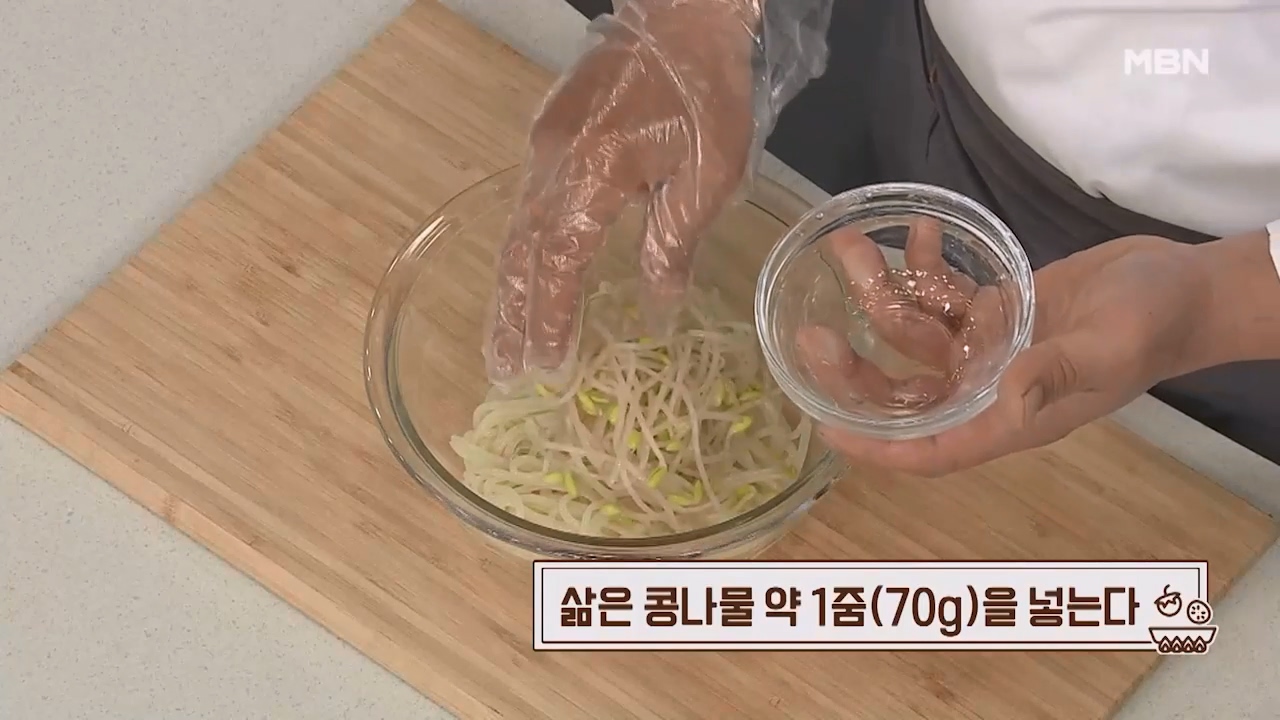 5. 삶은 콩나물 약 1줌(70g)을 넣습니다.