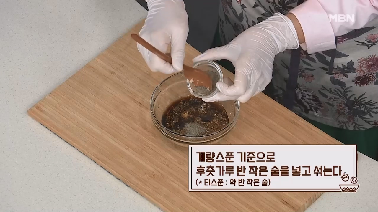 17. 계량스푼 기준으로 후춧가루 반작은술을 넣고 섞어줍니다. (티스푼 약 반작은술)