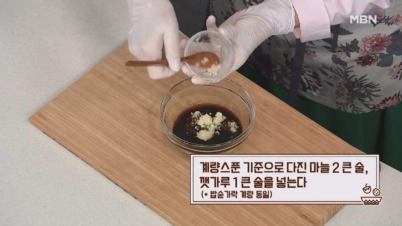 15. 계량스푼 기준으로 다진 마늘 2큰술, 깻가루 1큰술을 넣습니다. (밥숟가락 계량 동일)