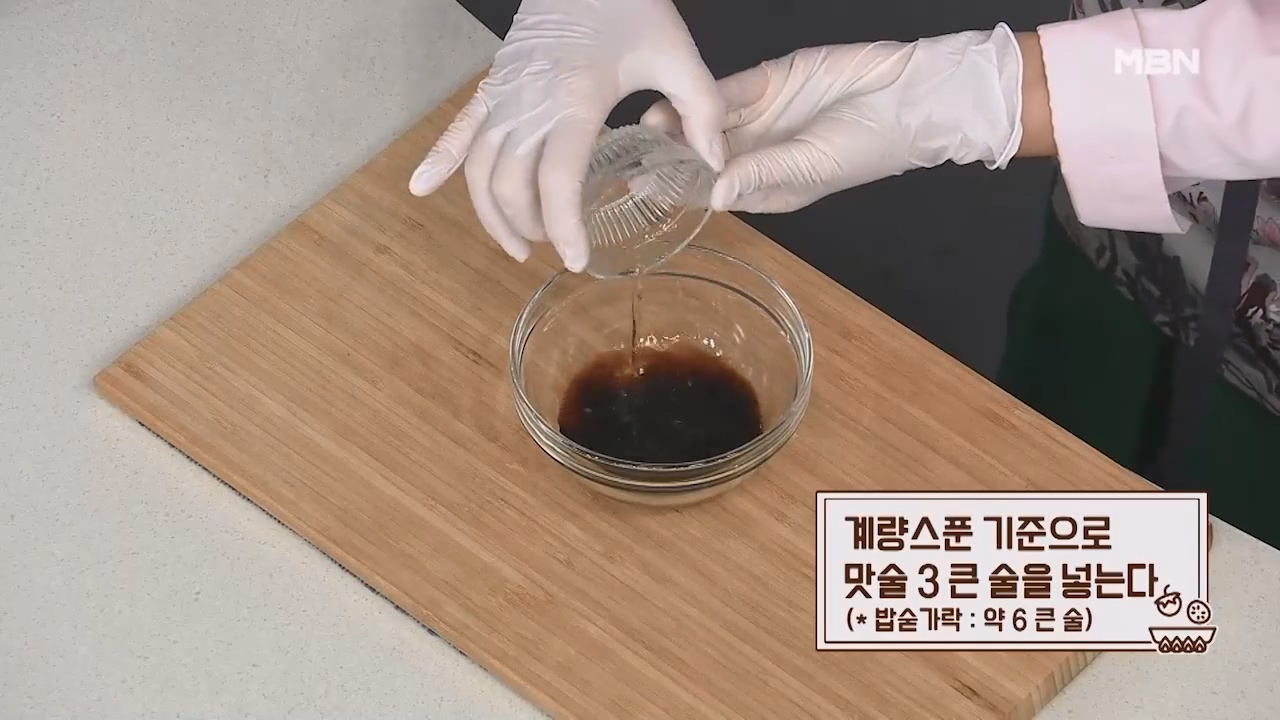 12. 계량스푼 기준으로 맛술 3큰술을 넣습니다. (밥숟가락 약 6큰술)