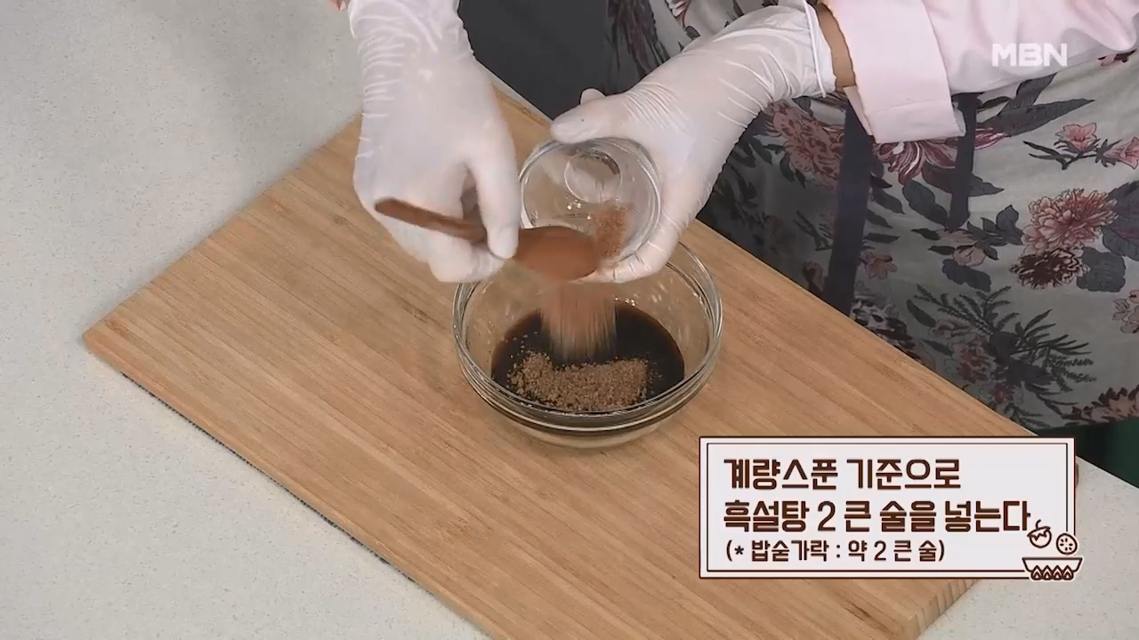 14. 계량스푼 기준으로 흑설탕 2큰술을 넣습니다. (밥숟가락 약 2큰술)