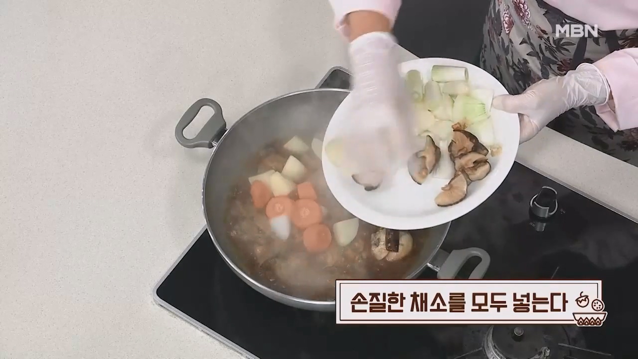 24. 손질한 채소를 모두 넣습니다.