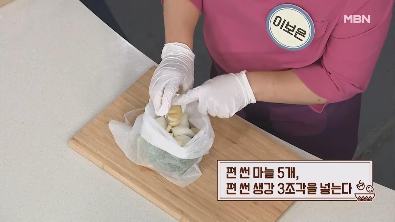 20. 총 1시간을 끓인 후 육수팩과 감자를 건집니다. (감자는 따로 보관 후 삼계죽에 사용)