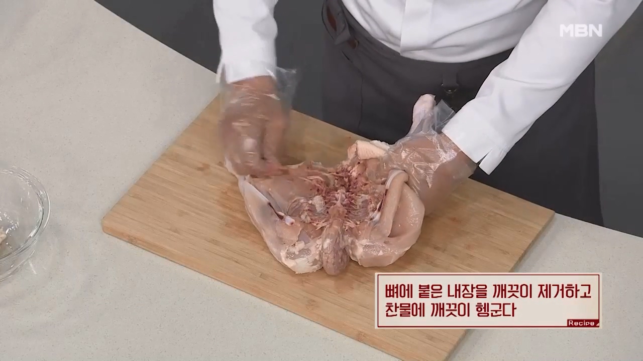 3. 뼈에 붙은 내장을 깨끗이 제거하고 찬물에 깨끗이 헹굽니다.
