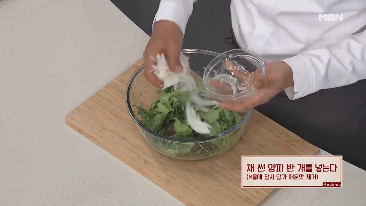 2. 채 썬 양파 반개를 넣습니다. (양파는 물에 잠시 담가 매운맛을 제거하고 사용합니다.)