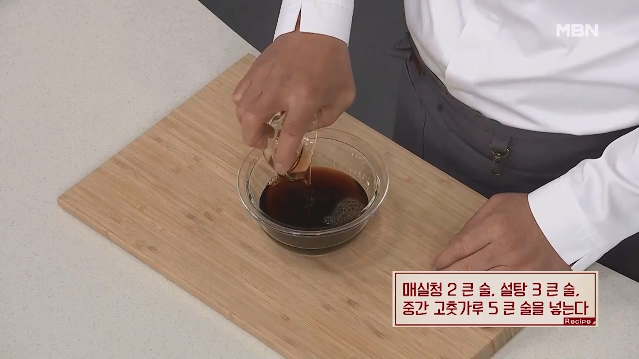4. 매실청 2큰술, 설탕 3큰술, 중간 고춧가루 5큰술을 넣고 잘 섞어줍니다.