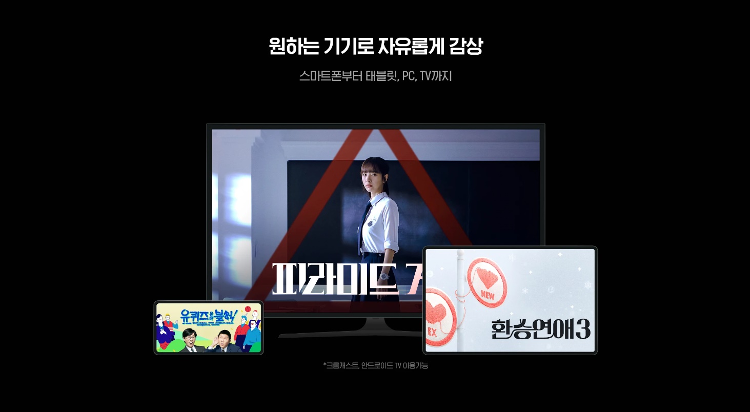 지원 기기: 모바일, 태블릿, PC, TV 광고: 없음 (광고 없이 콘텐츠 시청 가능)