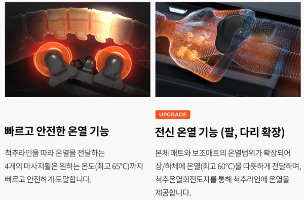 • 체형 교정: 척추를 따라 정밀하게 마사지해주는 기능은 올바른 체형을 유지하는 데 도움을 줍니다. 이는 특히 장시간 앉아 있는 직장인이나 학생들에게 효과적입니다.