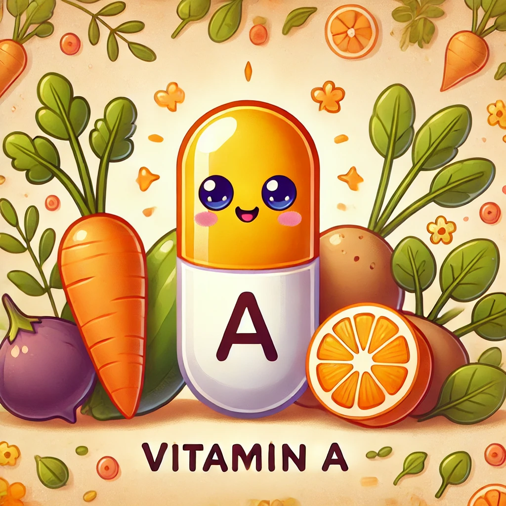 비타민A는 지용성 비타민으로서 레티놀, 베타카로틴 등의 형태로 우리 몸에 흡수됩니다. 레티놀은 동물성 식품에 주로 들어있으며 간, 달걀, 생선에 많이 함유되어 있고, 베타카로틴은 당근, 시금치, 단호박과 같은 식물성 식품에 풍부하게 들어 있습니다.