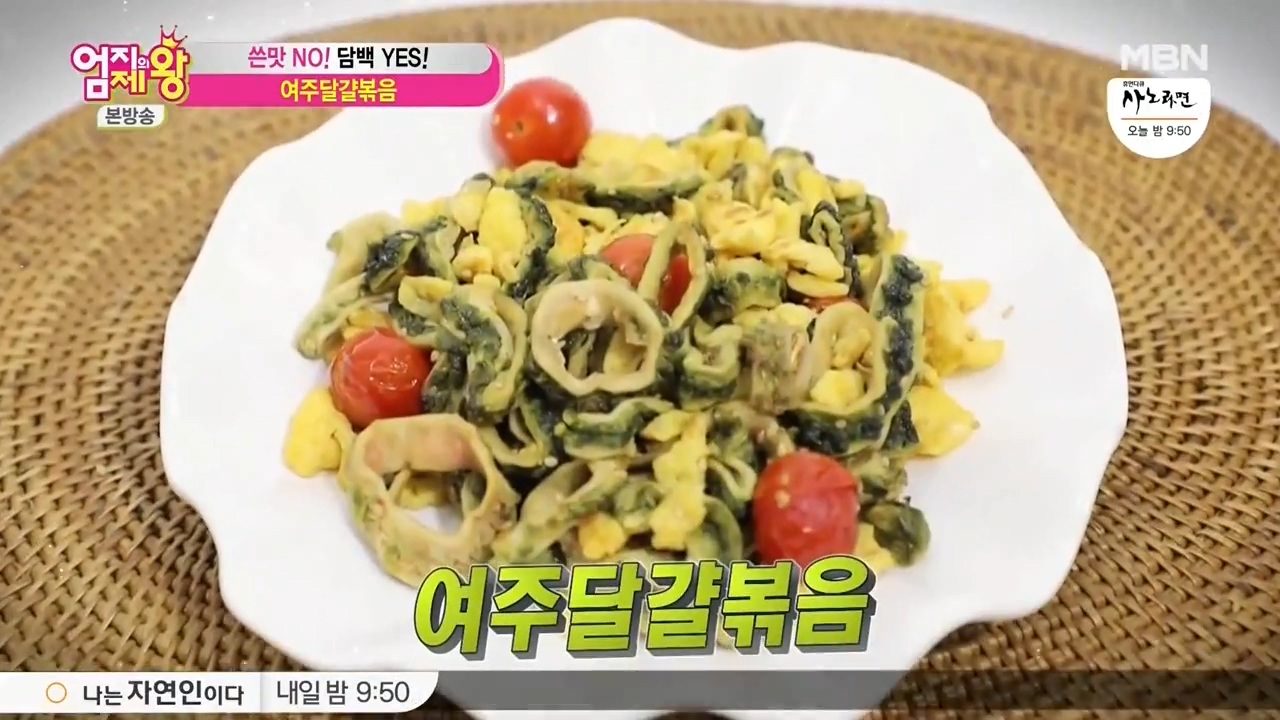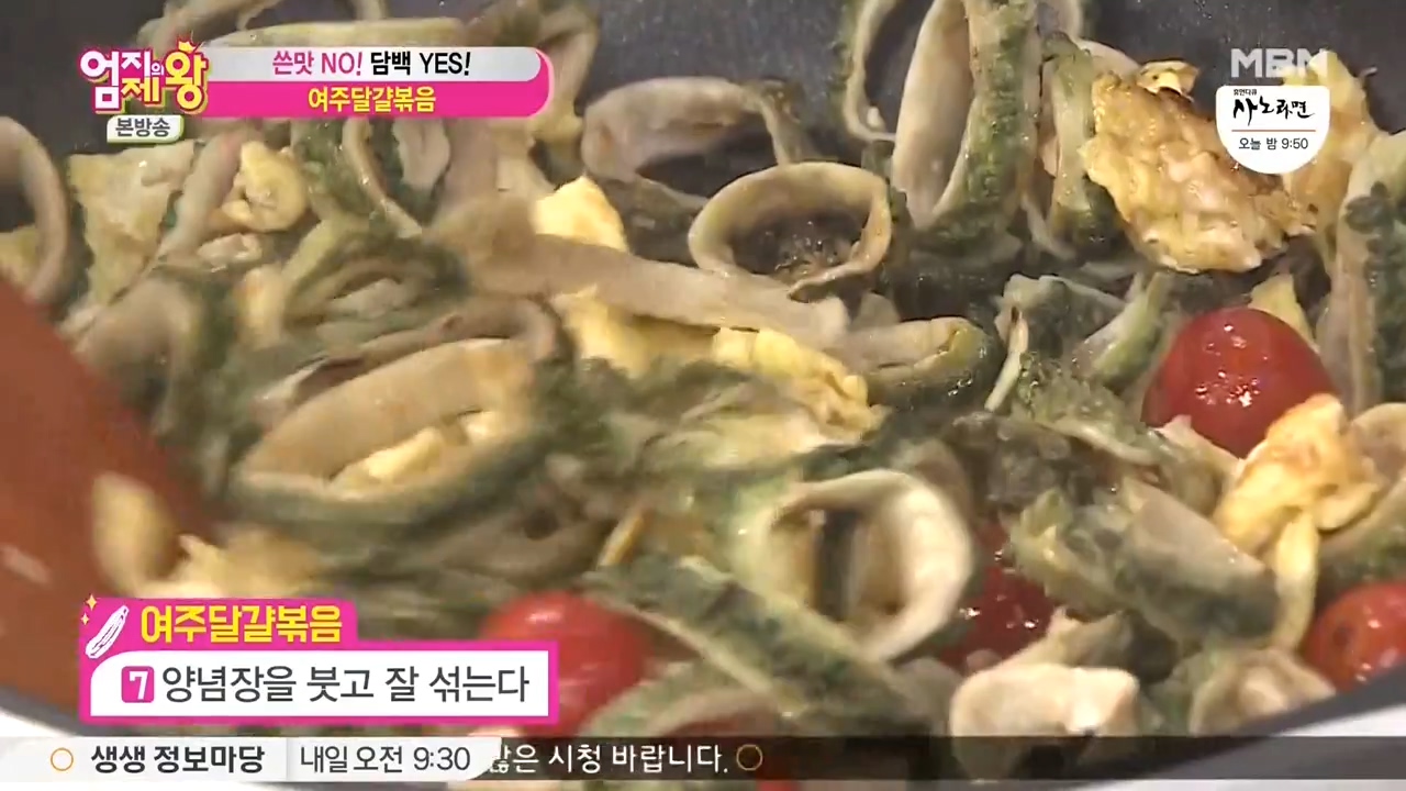 7. 양념장을 붓고 잘 섞어주면 여주달걀볶음이 완성됩니다.