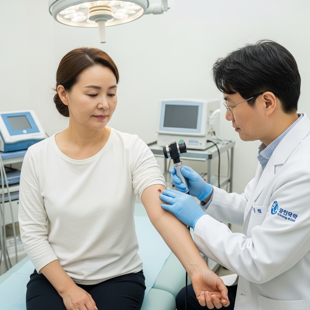 오늘 알려드린 ABCDE 법칙(비대칭, 불규칙한 경계, 다양한 색상, 6mm 이상의 크기, 변화)을 꼭 기억해 주세요. 만약 이 중 하나라도 해당하거나, 뭔가 느낌이 쎄한 점이 있다면 주저하지 말고 피부과 전문의를 찾아 확대경 검사(더모스코피)를 받아보시길 권장합니다. 조직 검사 전, 간단한 확대경 검사만으로도 많은 정보를 알 수 있습니다.