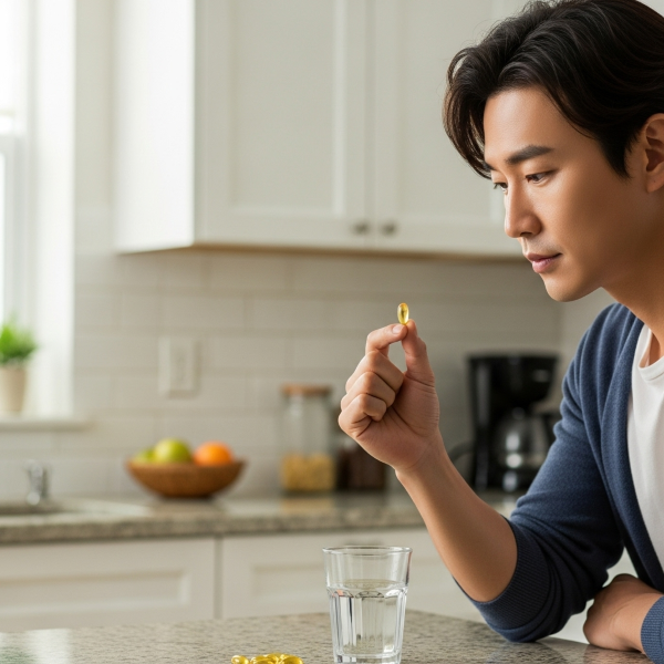 - 위장 장애 발생: 오메가3는 특유의 비린내가 있습니다. 빈속에 먹으면 소화되는 과정에서 이 비린내가 식도를 타고 올라와 하루 종일 불쾌한 '생선 트림'을 유발할 수 있습니다.