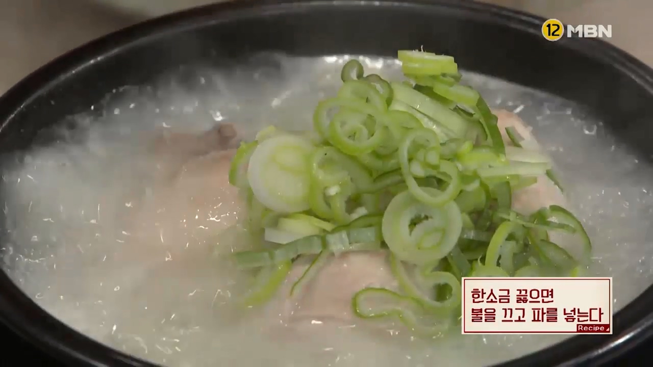 16. 한소금 끓으면 불을 끄고 파를 넣어주면 삼계탕이 완성됩니다.