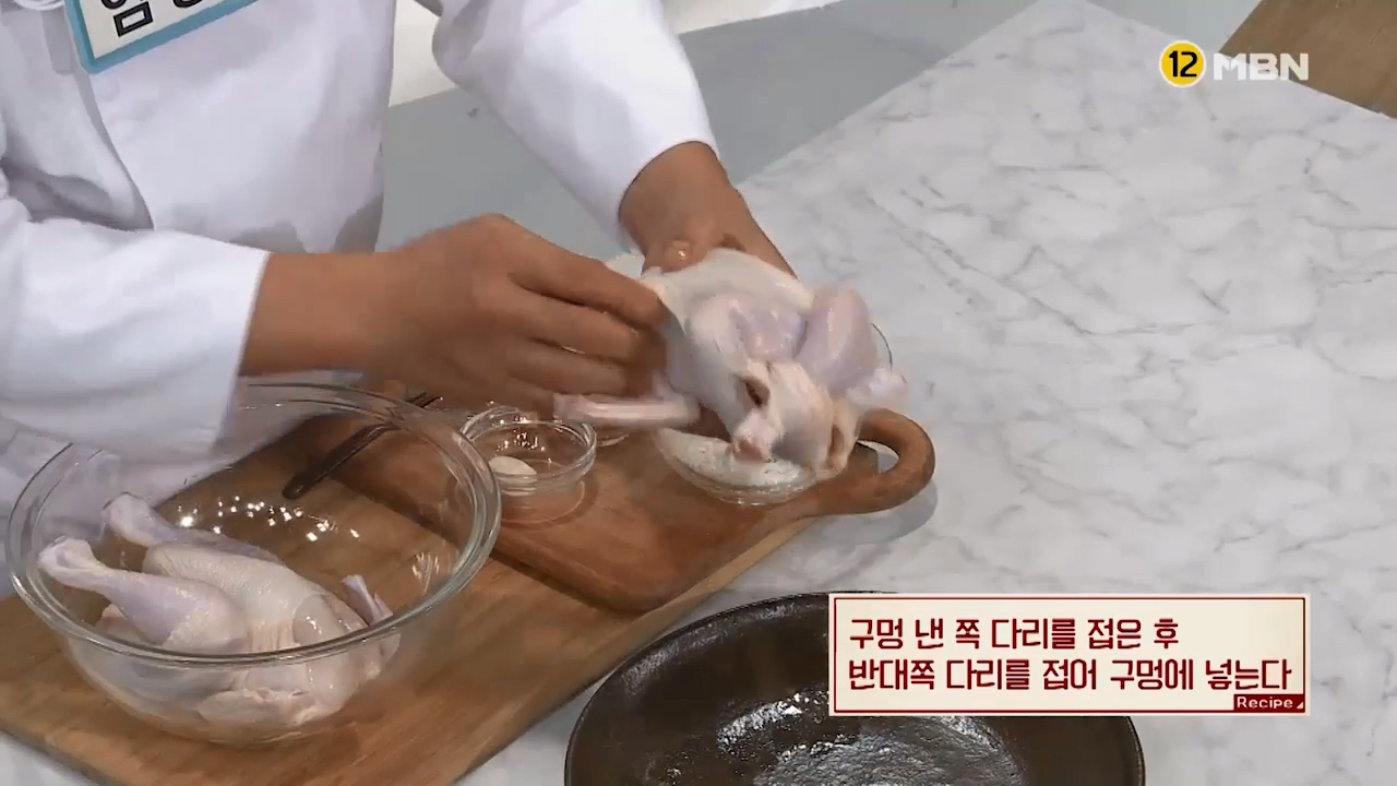 3. 닭 목을 비틀어 구멍에 넣어 막아줍니다.
