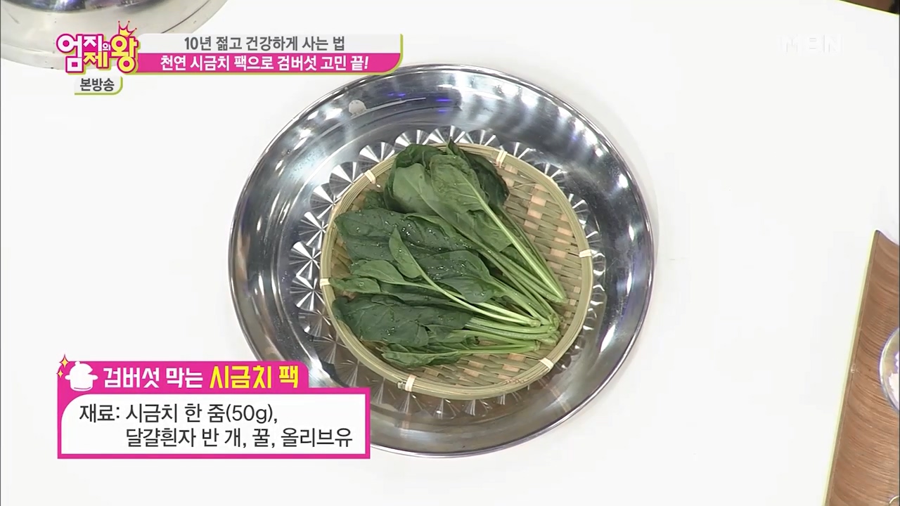 나이가 들면서 점점 생기는 검버섯이 걱정이 되는데요. 엄지의제왕에서는 검버섯을 예방하고 피부미백에 좋은 시금치팩 만드는법을 알려줬습니다. 시금치에는 비타민C가 풍부해 미백효과가 있어서 검버섯이 덜 올라오도록 하는데 도움이 되고 피부 노화를 막아준다고 합니다. 그리고 시금치에 있는 엽록소는 살균작용과 피부 탄력을 주는 효과도 있다고 합니다. 검버섯 예방 피부미백에 좋은 시금치팩 만드는법 알아봅시다.