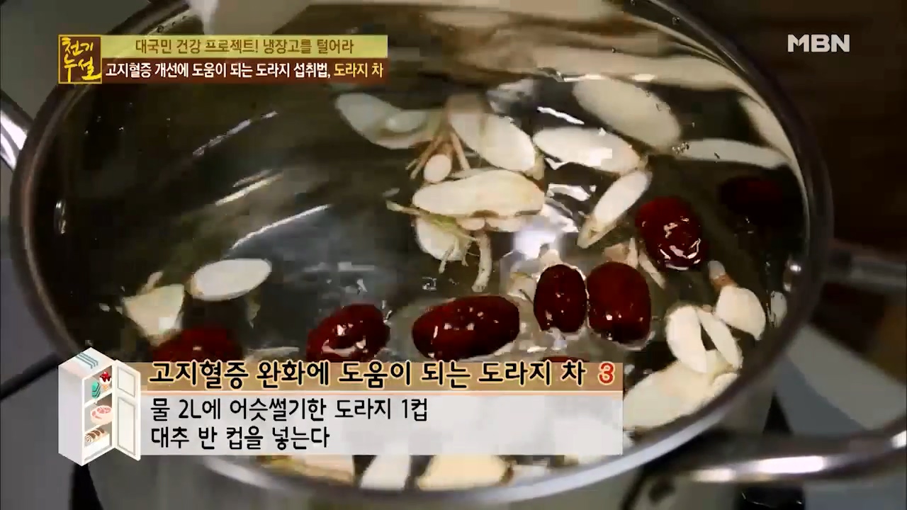 도라지에는 고지혈증에 도움이 되는 사포닌이 풍부합니다. 그리고 사포닌은 수용성이라서 도라지를 차로 끓여 마시면 더 좋다고 하는데요. 천기누설에서 알려준 고지혈증에 좋은 도라지차 만드는법 알아봅시다.