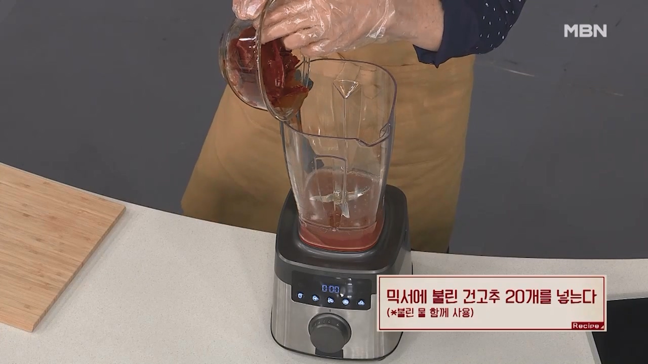 12. 믹서에 불린 건고추 20개와 불린 물을 넣어줍니다.